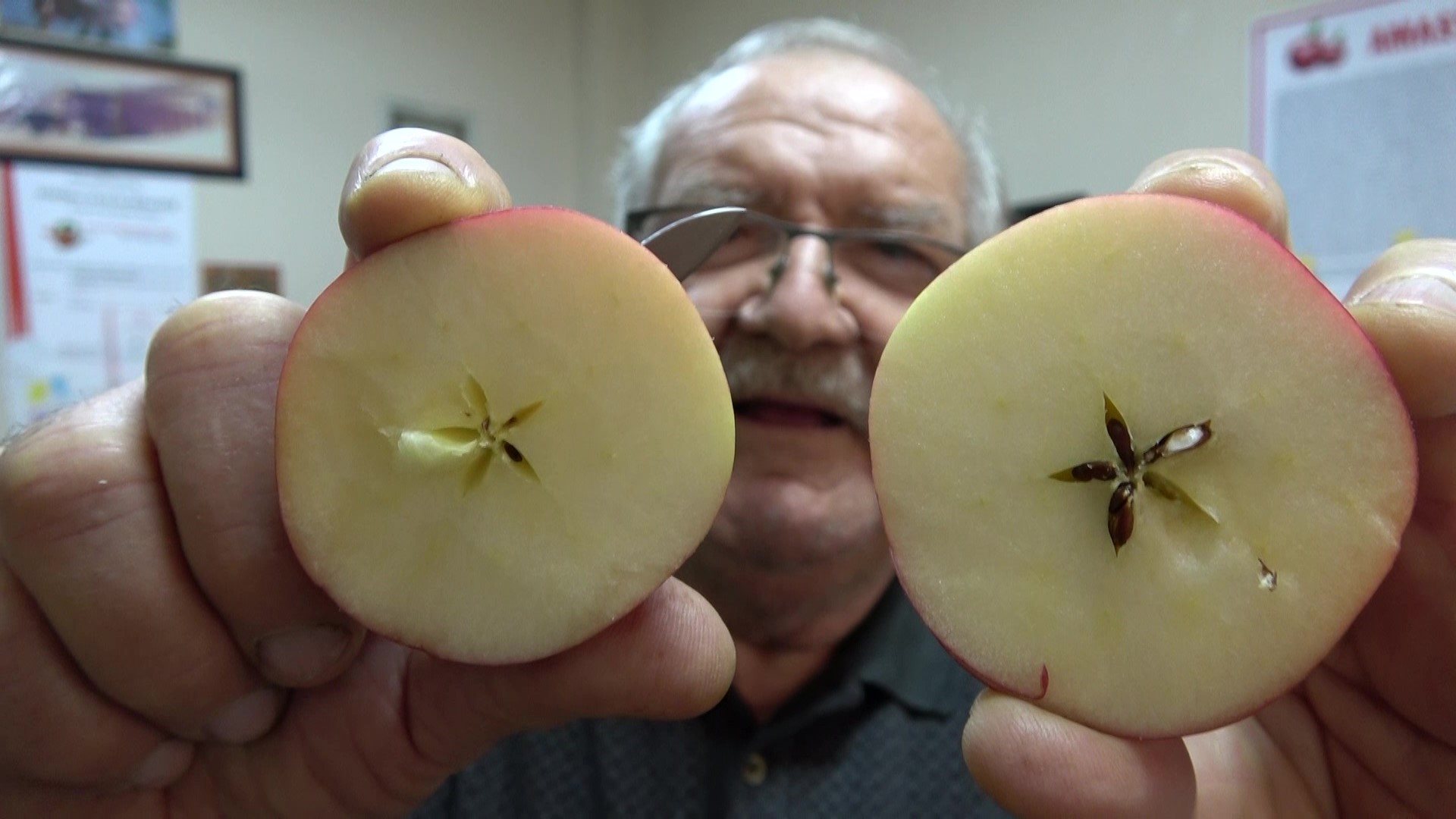Amasya’da 2 bin yıldır yetiştirilen coğrafi işaretli misket elma pazar ve manavlarda yok satıyor. Satıcılar ürün azlığı nedeniyle kilosu 150 TL’yi bulan elmalarını taklitlerinden ayırmak için ortasından kesip yıldızının görünmesiyle test ederek müşterilerine veriyor.