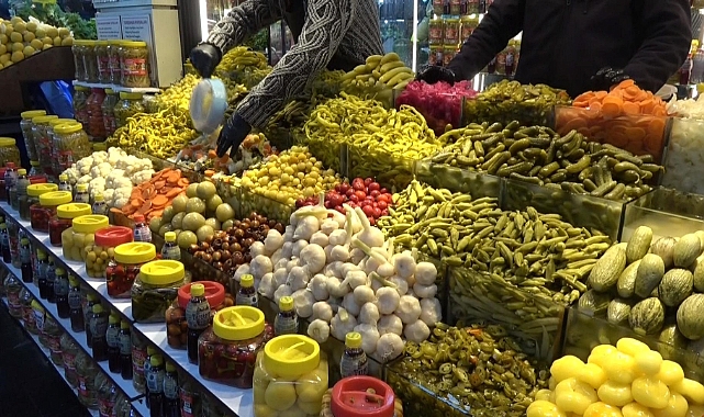 Kentte Ramazan ayında turşu tezgahlarının önü dolup taşıyor. İftar sofralarında turşu tüketiminin artmasıyla vatandaşların özellikle bamya, domates, sarımsak, muşmula ve erik gibi farklı turşu çeşitlerine yöneldiği gözlemlendi. Cam kavanozlar içinde sergilenen ürünlerin renkli görüntüsü, alışveriş için gelen vatandaşların dikkatini çekiyor. Tezgahta ayrıca biber, lahana, pancar, salatalık ve karışık turşu gibi birçok çeşit yer alıyor. Ramazan ayına özel olarak tüm turşu çeşitlerinde kilo fiyatı ise 250 TL.