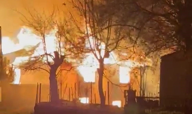 Alevlerin tamamen kapladığı yangında ev yanarak kullanılamaz hale geldi.
