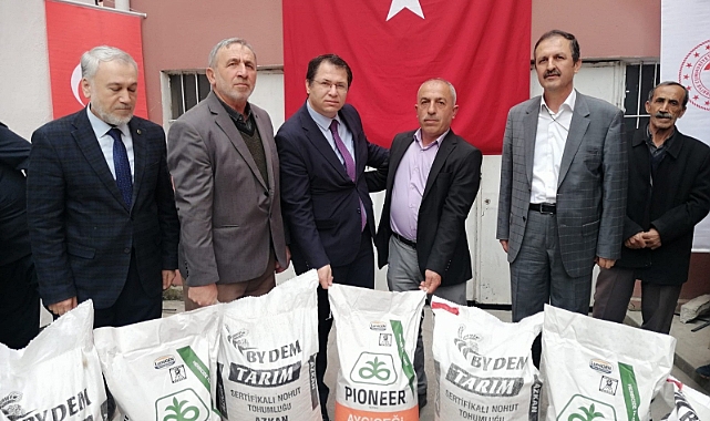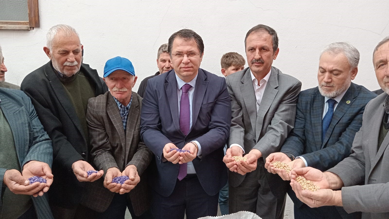 Tohum dağıtımına Kaymakam Ekrem Çeçen, İlçe Tarım ve Orman Müdürü Namık Özdüzgün, İlçe Müftüsü İlhami Şahin ile çiftçiler katıldı.