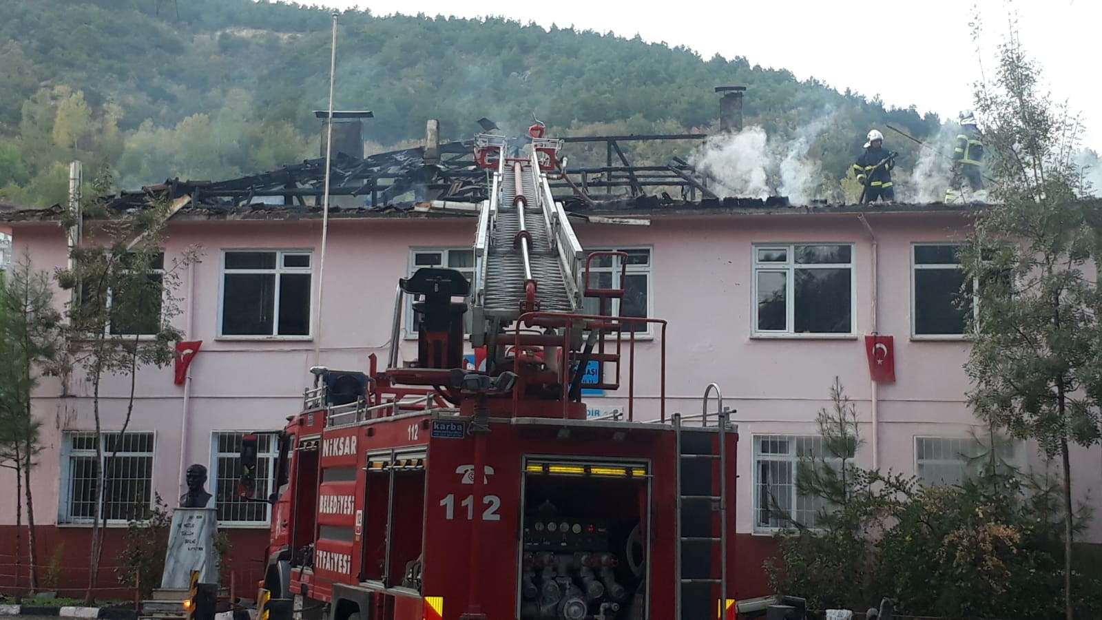 Tokat'ın Niksar ilçesinde bir okulun çatısı alevlere teslim oldu.Edinilen bilgiye göre; Niksar İlçesi Boğazbaşı mahallesinde bulunan iki katlı ilkokulun çatısında henüz bilinmeyen bir nedenle yangın çıktı. Biranda alevlerin yükseldiği okulda derste bulunan öğrenciler dışarı çıkartıldı. Yangına Niksar Belediyesi itfaiye ekipleri müdahale etti. Ekipler kısa sürede yangını kontrol altına aldı. Maddi hasarla atlatılan yangının çıkış sebebinin tespit edilmesi için çalışma başlatıldı.