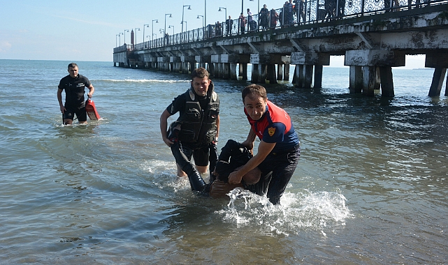 Çevredekilerin şaşkın bakışları arasında kendisini denize bırakan vatandaşı görenler durumu 112'ye bildirdi. İhbar üzerine bölgeye sağlık, itfaiye ve polis ekipleri sevk edildi.Kısa sürede bölgeye gelen Ordu Büyükşehir Belediyesi itfaiye ekipleri, Ayhan E.'yi denizden kıyıya çıkardı. Sağlık ekiplerinin müdahalesiyle ambulansa alınan vatandaş, Ünye Devlet Hastanesine kaldırıldı. Ayhan E.’nin sağlık durumunun ağır olduğu bildirildi.