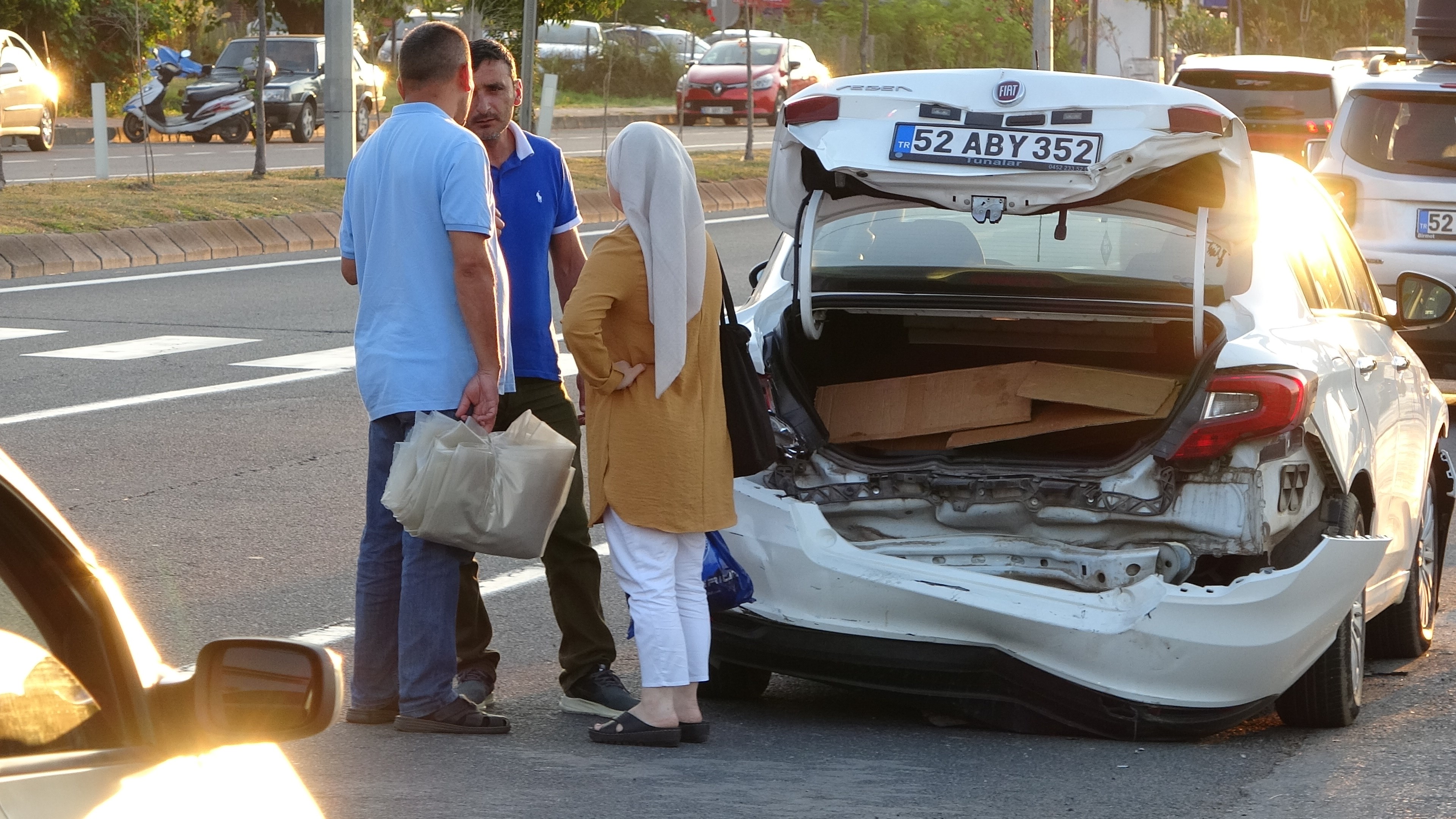 Kaza, Altınordu ilçesi Kumbaşı Mahallesi'nde meydana geldi. Edinilen bilgiye göre, A. P. İsimli ehliyetsiz sürücünün kullandığı otomobil, kırmızı ışıkta bekleyen ve İ. P. yönetimindeki otomobile arkadan çarptı.Çarpışmanın etkisiyle İ. P.'nin otomobili de önündeki A. Y.'nin kullandığı otomobile vurdu. 3 aracın karıştığı zincirleme trafik kazasında araçlarda yolcu olarak bulunan toplam 3 kişi yaralandı. İhbar üzerine olay yerine sağlık, itfaiye ve polis ekipleri sevk edildi.