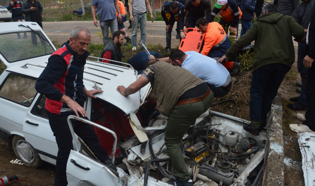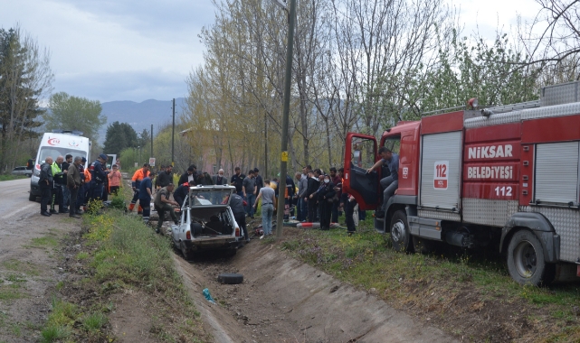 Çarpmanın etkisi ile otomobilde sürücü ile birlikte yolcu olarak bulunan A.T. (64) araçta sıkıştı. Olay yerine Niksar Belediyesi itfaiye ekipleri ile sağlık ekipleri sevk edildi. İki kişi itfaiye ekipleri tarafından sıkıştığı yerden güçlükle çıkartıldı. Yaralılar sağlık ekipleri tarafından polis ve vatandaşların da yardımı ile sedye ile ambulansa taşındı. Niksar Devlet Hastanesine sevk edilen yaralılardan sürücünün durumunun ağır olduğu öğrenildi.