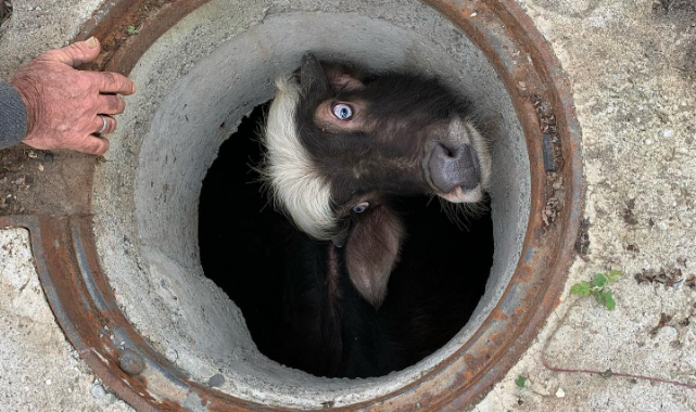 Hafif sıyrıklarla düştüğü kuyudan kurtarılan manda yavrusu sahibine teslim edildi.