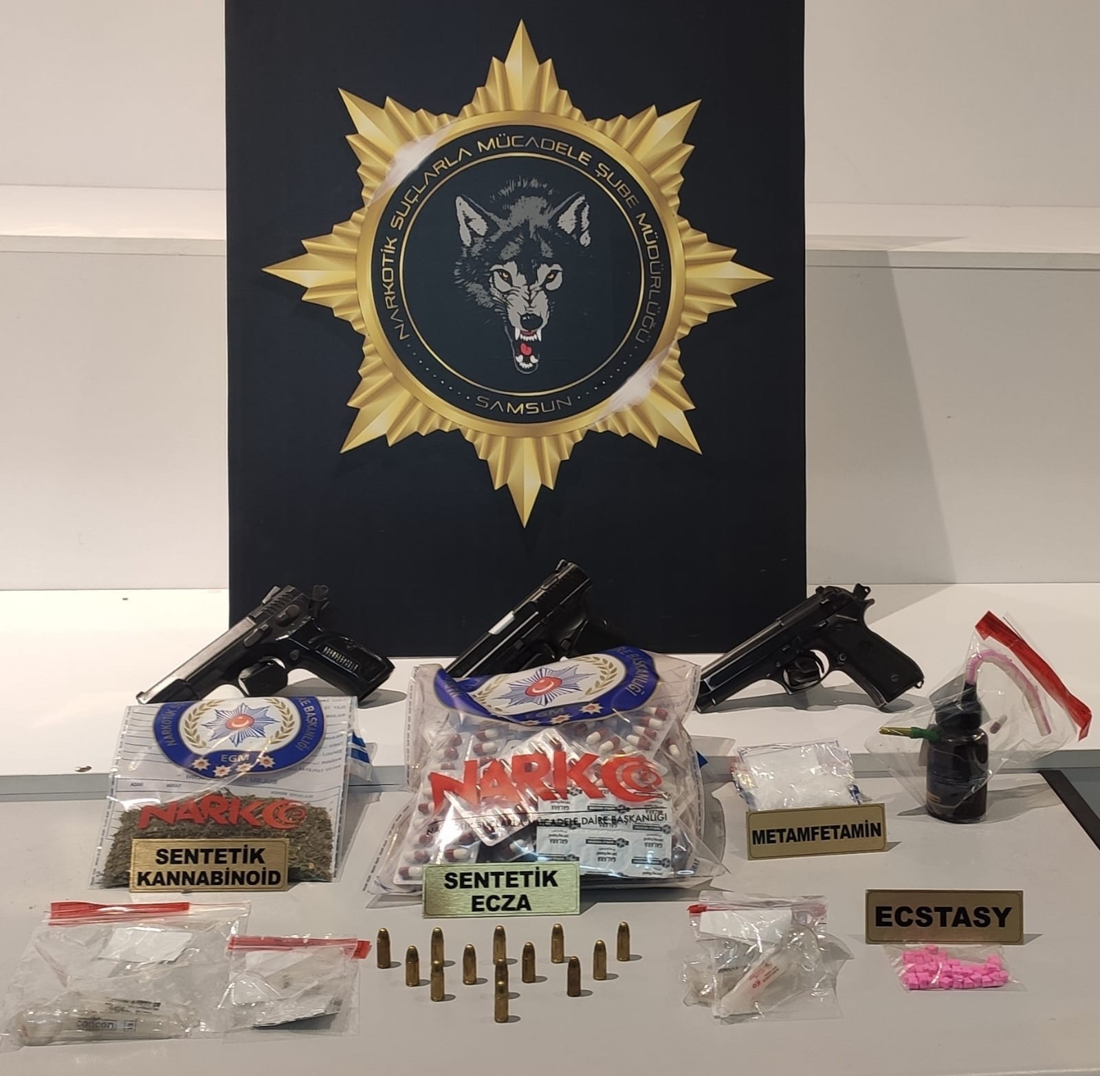 Samsun'da polis tarafından düzenlediği eş zamanlı uyuşturucu operasyonunda 25 şüpheli gözaltına alındı.Edinilen bilgiye göre, Samsun Emniyet Müdürlüğü Narkotik Sularla Mücadele Şube Müdürlüğü ekipleri, Samsun Cumhuriyet Başsavcılığı koordinesinde sokak satıcılarına yönelik eş zamanlı operasyon düzenledi. Çok sayıda adrese düzenlenen operasyonda 25 şüpheli gözaltına alındı. Gözaltına alınanlarla birlikte 26,81 gram bonzai (sentetik kannabinoid) maddesi, 10,82 gram metamfetamin maddesi, 61 adet extacy hap, 189 kapsül sentetik ecza, 9 adet uyuşturucu madde kullanımına yarar aparat, 2 adet ruhsatsız tabanca, 1 adet kurusıkı tabanca ve 13 adet tabanca fişeği ele geçirildi.Soruşturma devam ediyor.