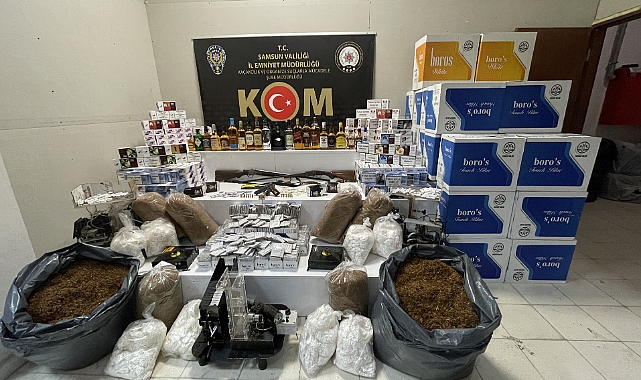 Samsun'da düzenlenen kaçak sigara operasyonunda 22 şüpheli gözaltına alındı.Operasyonda, 347 bin 637 doldurulmuş makaron, 1 milyon 194 bin 400 dal boş makaron, 83 paket 1 kilogramlık tütün, 47 sigara sarma makinesi, 8 kompresör ve parçaları, 72 sigara mentolü, 6 bin 227 sigara paketlemede kullanılan sigara poşeti, 1542 adet TAPDK bandrolü, 142 bin 40 gram açık kıyılmış tütün, 21 şişe gümrük kaçağı içki, 5 paket gümrük kaçağı sigara, 141 paket sigara sarma kağıdı, 35 bin sigara filtresi, ruhsatsız tabanca, 2 ruhsatsız tüfek, 2 tabanca şarjörü ile 291 tabanca fişeği ele geçirildi.