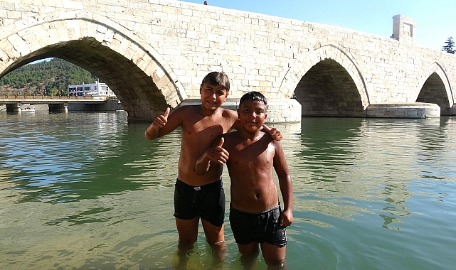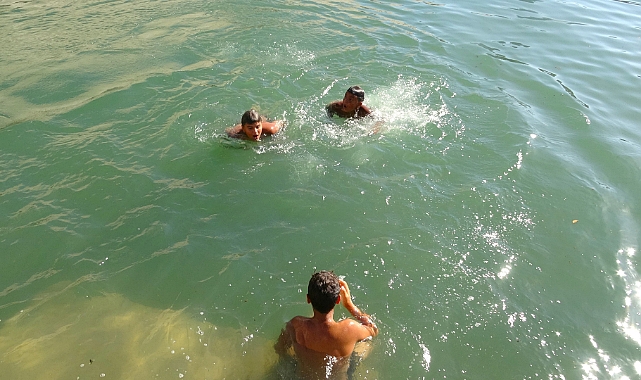 Tokatta sıcaktan bunalan çocuklar Yeşilırmak'ta yüzerek serinledi.