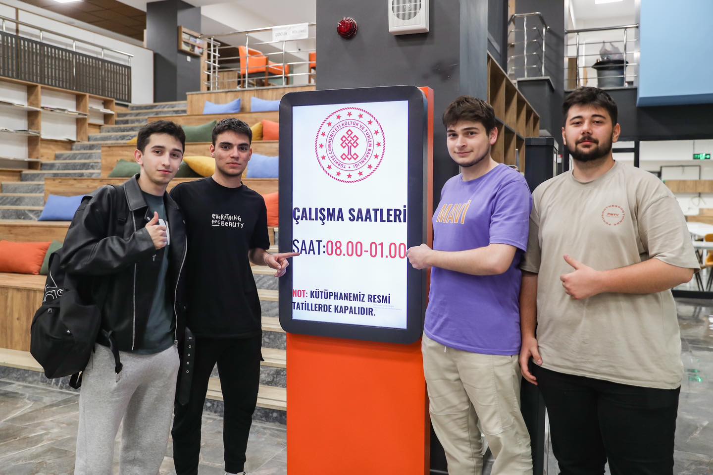 Öğrenciler Saat Uygulamasından MemnunKütüphaneden gece saat 01.00'a kadar faydalanacak olan öğrenciler ise "Gençler için cidden güzel bir durum. Çalışacak ortam olması, sosyalleşecek ortam olması. 01.00'a kadar açık olması da şansımız. Şehir adına da ülke adına da kütüphanelerin önemi büyük. Bazen evde düzgün ortam olmuyor. Bazen insan evde de sıkılabiliyor. Yani burada gelip 2-3 saat çalışmak bile çok verimli" görüşlerinde bulundu.
