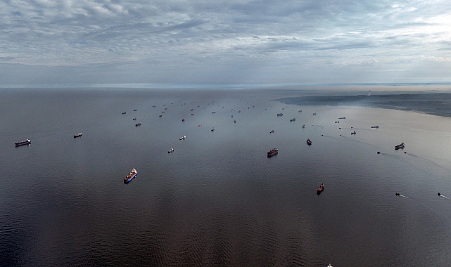 Öte yandan İstanbul Boğazında bekleyen ve aralarında tankerlerin de olduğu tahıl yüklü gemiler dron ile havadan görüntülendi.