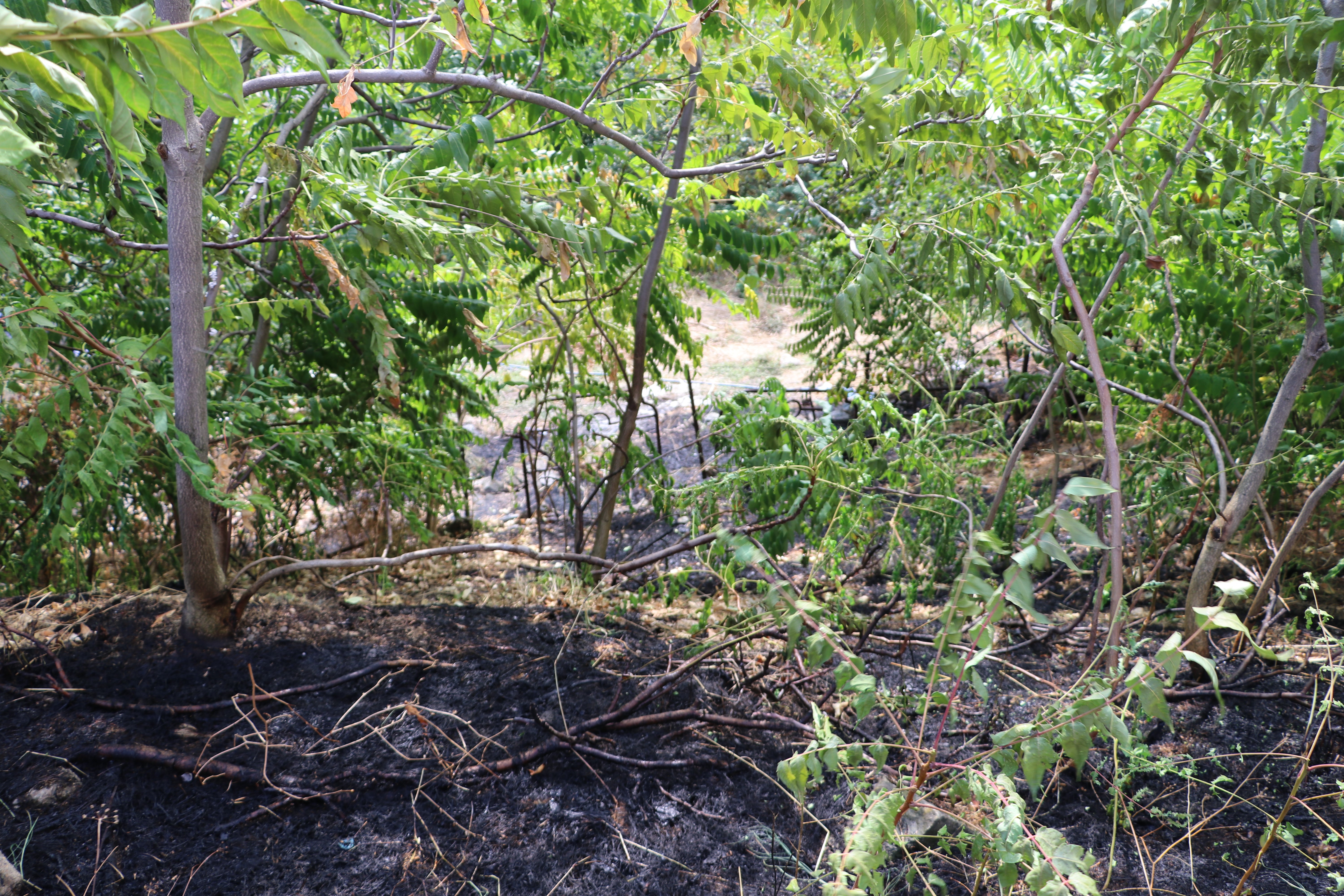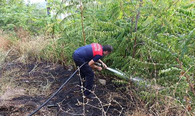 Yol üstünde bulunan bir kaplumbağa da yanmaktan kurtuldu.Yangının çıkış nedeni araştırılıyor.