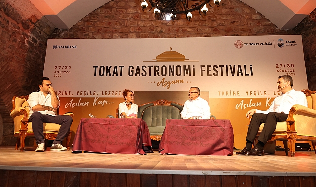 Söyleşi programına katılan Tokat Belediye Başkanı Av. Eyüp Eroğlu, “Tokat Gastronomi Festivali birincisini yaptığımız bu güzel festivalimiz dün kapılarını açtı. Ve bugün ikinci gündeyiz. Dün Emine Erdoğan hanımefendinin katılımlarıyla birinci programımızı yaptık Tokat mutfağı Emine Hanım’a tanıtıldı. Dünden itibaren başlayan programımızın bugünkü, yarınki ve bir sonraki günlerde ise çok değişik etkinliklerle dört gün boyunca Tokat’ta güzel bir Tokat mutfağı esintisi olacak.Şu anda söyleşi alanımızdayız. Tokat mutfağı ve bunun işletmeler mantığında daha nasıl geliştirilebileceği ve Tokat mutfağını dünyaya nasıl tanıtırız, bunları konuşacağız. Bu sadece dört gün süren bir program olmayacak. Bu dört günde elde ettiğimiz güzellikler bir yıl boyunca devam edecek” dedi.