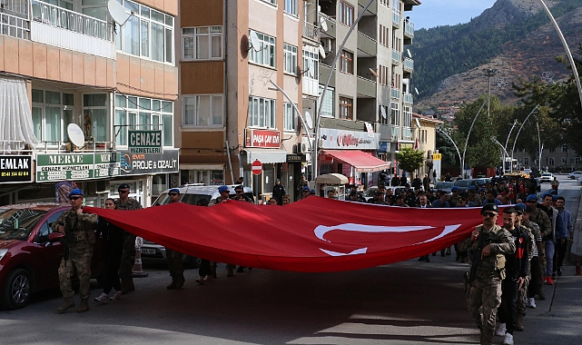 Vali Numan Hatipoğlu, Cumhuriyet Meydanı'nda düzenlenen programda, Tokat Şehitliği'ne götürülecek Türk bayrağını komando ve özel harekat polislerine öperek teslim etti.Türk bayrağı, Hatipoğlu ile komandolar, özel harekat polisleri, öğrenciler ve vatandaşlar tarafından temsili olarak 2023 adımda şehitliğe götürüldü.Şehitlikte Hatipoğlu, şehit yakınları, gaziler ve yakınları, protokol mensupları ile öğrenciler, 100 fidanı toprakla buluşturdu, ardından şehitler için dua edildi.Hatipoğlu, burada yaptığı konuşmada, ülke genelinde büyük coşku ve gururla kutlamalarına başlanan Cumhuriyet Bayramı'nın kutlu olmasını diledi.