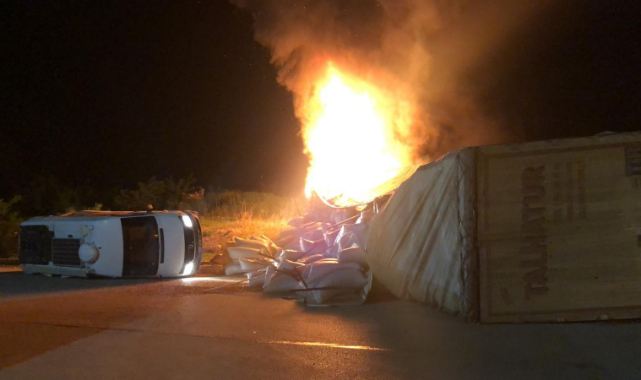 Tokat’ta kırmızı ışıkta bekleyen araçlara çarparak devrilen tırın alev aldığı kazada 4 kişi yaralandı.