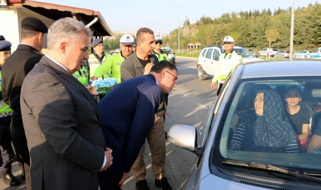 Araçlardaki çocuklara çeşitli hediyeler veren Vali Balcı, sürücü ve yolculara hayırlı yolculuklar diledi.