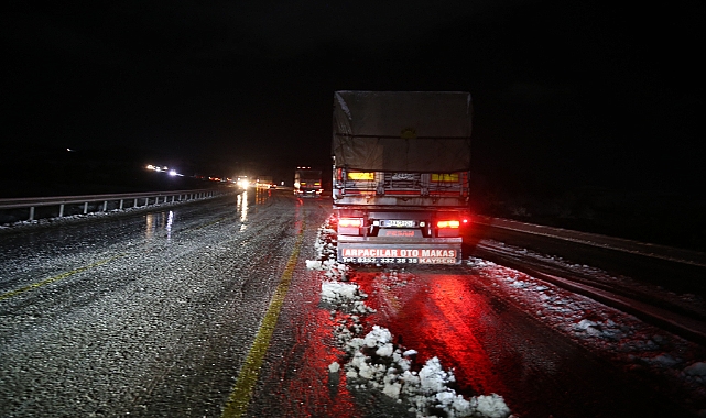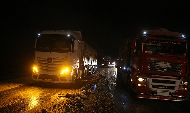 Tokat'ta buzlanan yolda çok sayıda tır ve çekici araç yolda kaldı