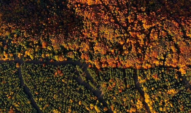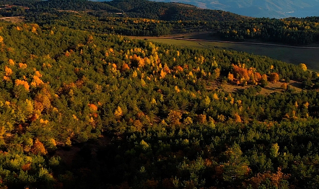 Tokat'ta bin 600 rakımlı Topçam Dağı'nda sonbaharla birlikte çam ağaçlarının aldığı sarı renk güzel bir görüntü oluşturdu.