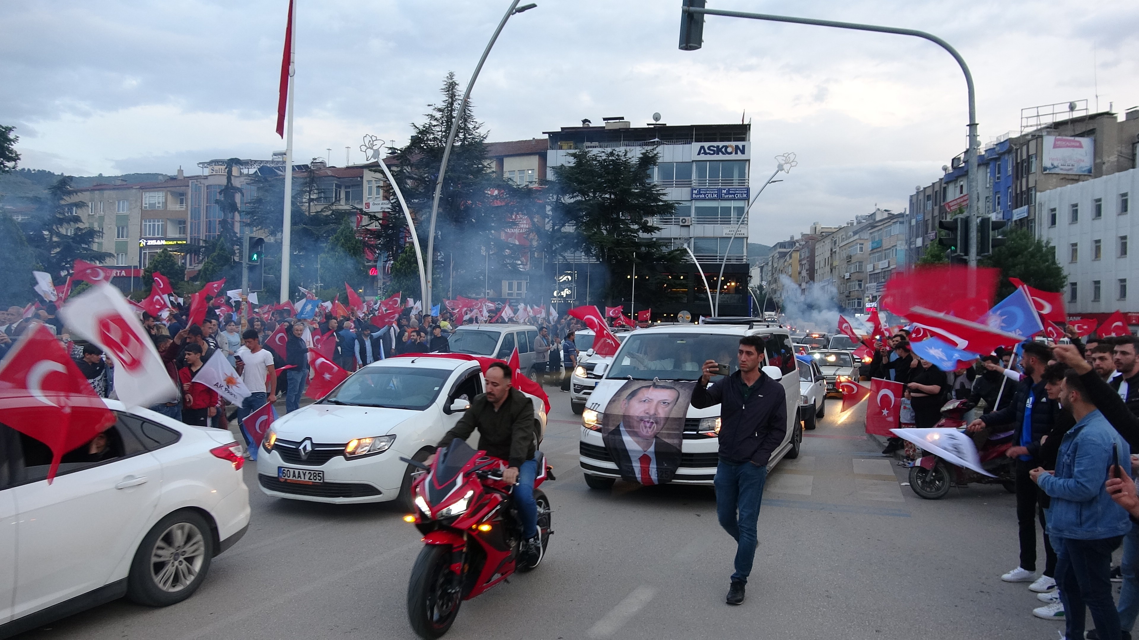 Cumhuriyet Meydanı'nda araçlarına astıkları Türk bayrağı ve parti flamalarıyla gelen vatandaşlar kutlama yaptı. Kutlama sırasında renkli görüntüler oluşurken bazı vatandaşlar kamyonetlerin arkasına binerek kutladı. Meşaleler ve havai fişekler vatandaşların coşkusuna eşlik ederken Cumhuriyet Meydanı doldu taştı.
