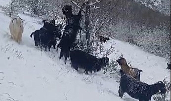 Tokat’ın Reşadiye ilçesi Bayramaltı köyünde hayvancılıkla uğraşan Yılmaz Dayan, kar kış demeden keçilerini yaylara çıkartarak güdüyor. İlçede etkili olan yağış nedeniyle kar kalınlığı 20 santimetreyi geçti. Yaz kış denemen keçilerini yaylaya götüren Dayan, kar yağışına aldırmadan dik yamaçlarda işini devam ettiriyor.Dayan, zorlu kış şartlarına aldırış etmeden 150 adet keçiyi karlı dağ yamaçlarına götürerek güdüyor. Dizlerine kadar kara gömülen keçiler ağaç dallarına uzanarak yeme ihtiyacını karşılıyor.
