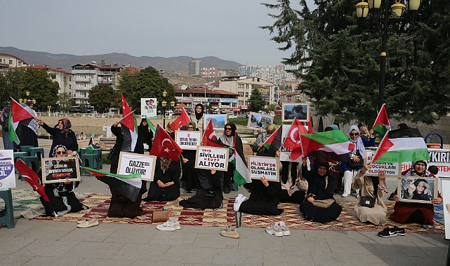 Tarihi Hıdırlık Köprüsü yanında bir araya gelen sivil toplum örgütleri ile siyasi partilerin kadın temsilcileri, Filistin bayrakları ile dövizler taşıdı.Oturma eylemi öncesi grup adına Gülsüm Ceylan, basın açıklaması yaptı.Ceylan, bir insan olarak dünyaya oturma eylemi ile seslerini duyurmaya çalıştıklarını, bu acılara sessiz kalınmasını kınadıklarını söyledi.Tokat İHH Hanımlar Komisyonu Başkanı Refika Erdem de zulmün karşısında durmak için bir araya geldiklerini dile getirerek, "Büyük bir facia var orada. Kanlı bir vahşet var. Zalim İsrail'in duracağı yok." ifadesini kullandı.Daha sonra başlanan oturma eylemi, akşam saatlerinde sona erecek.