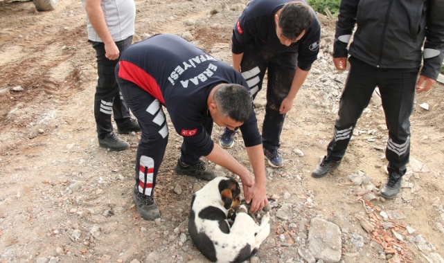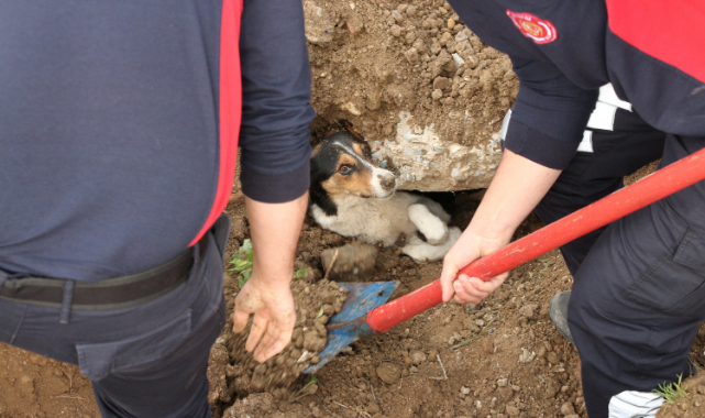Tokat'ın Erbaa ilçesinde, iş makinesinin çalışması sırasında fark edilmeyerek yuvası toprak altında kalan anne köpek ve 3 yavrusu, yaklaşık 5 saat sonra itfaiyenin çalışmasıyla bulundukları yerden kurtarıldı.