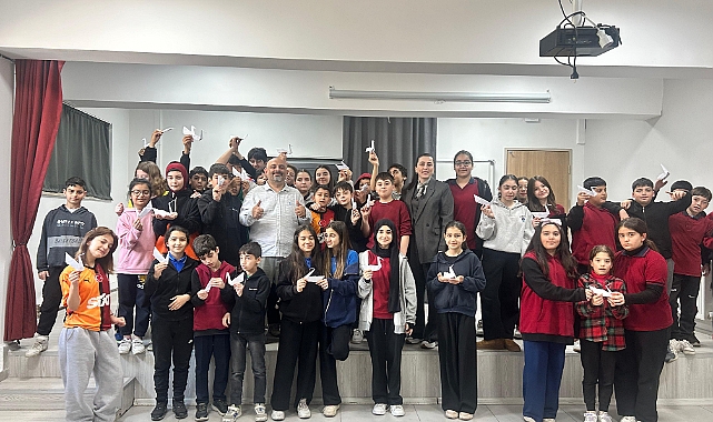 Atatürk Ortaokulu Konferans Salonu'ndaki etkinlikte öğrencilerle buluşan Tokat Gaziosmanpaşa Üniversitesi Öğretim Üyesi Prof. Dr. Hüseyin Mertol, hikaye anlatımını storigami tekniğiyle birleştirdi.