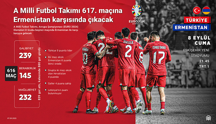 Türkiye Futbol Federasyonundan (TFF) yapılan açıklamada, "32 bin Türk bayrağı ile tribünleri dolduracak olan taraftarlarımız, göğsünde gururla ay-yıldızlı armayı taşıyan 'Bizim Çocuklara' yine destek verecek. Şanlı Cumhuriyetimizin 100. yılına özel hazırladığımız koreografimizle, dev Türk bayrağımızla yarın Eskişehir'de sahaya tek yürek olarak çıkacağız." denildi.
