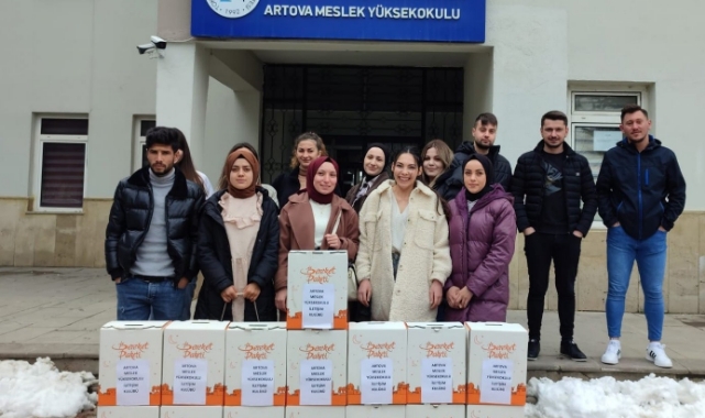 Tokat Gaziosmanpaşa Üniversitesi (TOGU) Artova Meslek Yüksekokulu öğrencileri ihtiyaç sahibi ailelere Ramazan kolisi dağıttı.