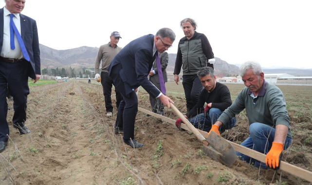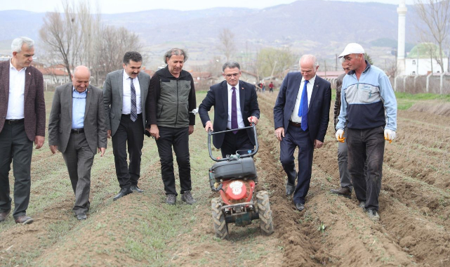 Tokat Valisi Ozan Balcı, meyve fidanı üretme istasyonunda çapa makinesi kullandı.