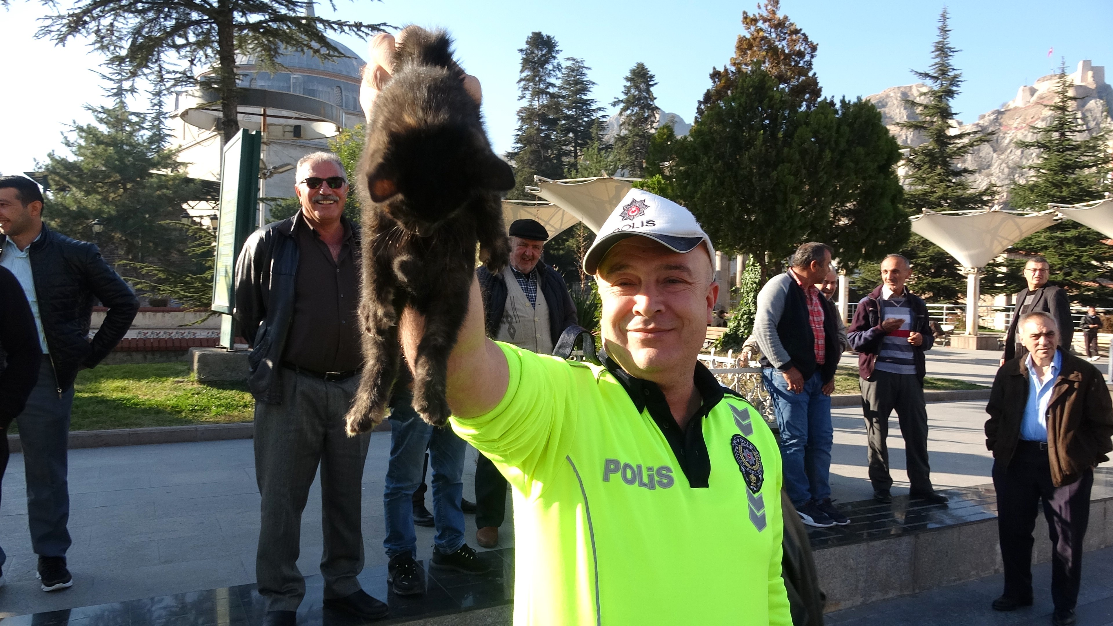 Olay yerinden geçen bir trafik polisi aracın çamurluk davlumbazının kapağını söktü. Boşluktan kediyi eli ile tutarak kurtaran polisi vatandaşlar alkışladı. Kedi Yeraltı çarşısı üzerinde bulunan doğal yaşam alanına bırakıldı.