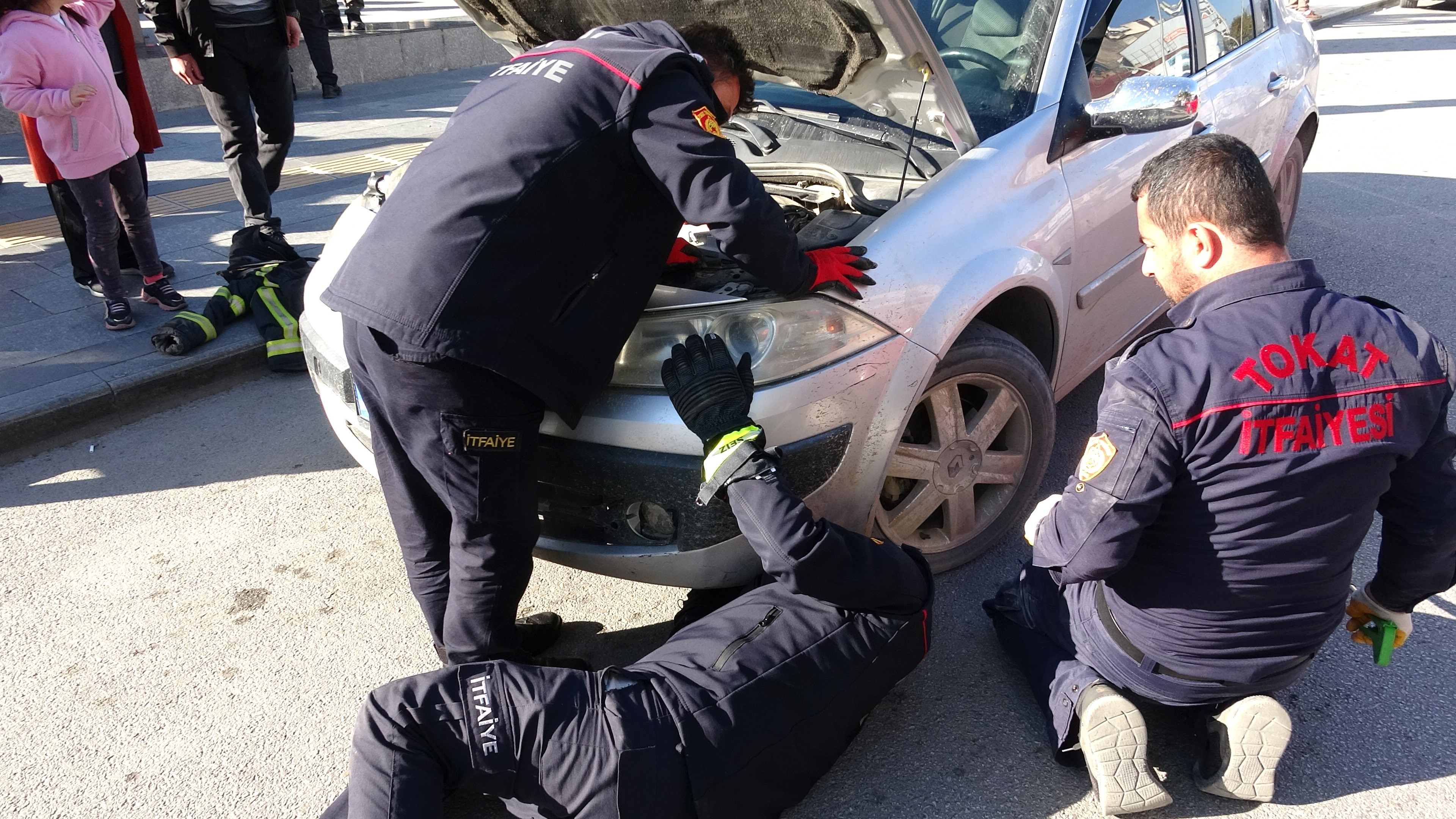 Tokat’ta otomobilin motor kısmına giren yavru kedi ekiplere zor anlar yaşattı. Uzun uğraşlar sonucu kediyi bir trafik polisi bulunduğu yerden kurtardı.Cumhuriyet Meydanı GOP Bulvarında park halinde olan bir otomobilin motor kısmından kedi sesi geldiğini duyan duyarlı bir vatandaş durumu itfaiye ekiplerine haber verdi. Tokat Belediyesi itfaiye ekipleri kedinin bulunduğu yerden çıkması için oksijen tüpü ile müdahale etti. Basınçlı tüpün vanasının açılması ile sesten korkan kedi otomobilin altından çıkarak başka bir otomobilin motor kısmına girdi.