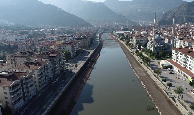 Anadolu’nun Venedik’i Amasya'nın ortasından geçen Yeşilırmak’ın temizlenip kanal şekli alarak cazibe merkezi haline gelmesi için planlanan proje hızla sürüyor. Nehrin iki yakasında 3 aydır süren hummalı çalışma havadan dron ile görüntülendi.