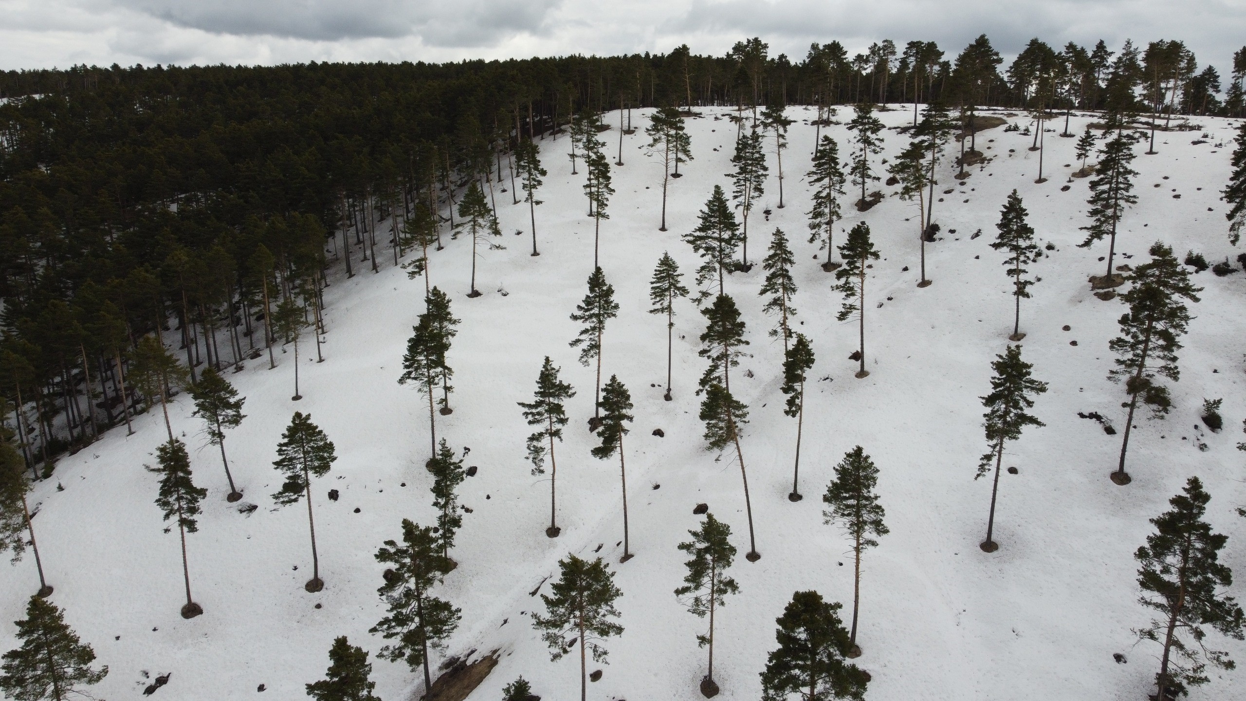 Bir tarafta karla kaplı zirveler, diğer tarafta çam ağaçlarından oluşan ormanlar doğada etkileyici manzaralar oluşturdu.Ortaya çıkan bu eşsiz görüntüler dron kamerasıyla havadan görüntülendi.