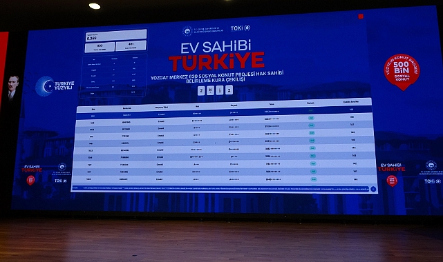 Toplu Konut İdaresi (TOKİ) Başkanlığının hayata geçirdiği Yüzyılın Konut Projesi'nin kura çekimleri Yozgat Valiliği konferans salonunda düzenlendi. Programa Çevre, Şehircilik ve İklim Değişikliği Bakanlığı Personel Genel Müdürü Halil Erdoğan, Daire Başkanı Cavit Güler, Yozgat Valisi Mehmet Ali Özkan, il ve ilçelerden protokol üyeleri katıldı. Yozgat Müftüsü Nihat Kök tarafından yapılan duanın ardından kura çekimi için butonlara basılarak hak sahipleri belirlendi.