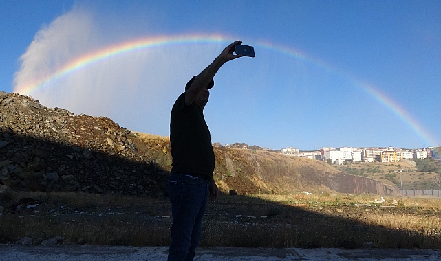 Yozgat'ta şehrin ana su boru hattı patladı, ortaya gökkuşağı çıktı