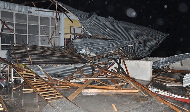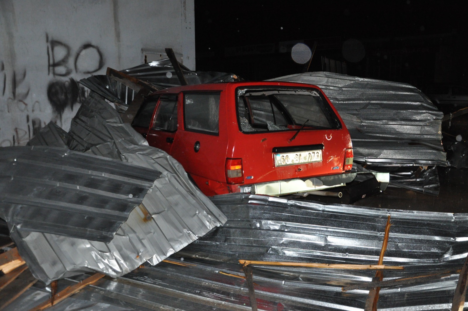 Yozgat’ın Sorgun ilçesinde şiddetli rüzgar, sanayi sitesindeki bazı iş yerlerinin çatısını uçurdu. Çatıdan kopan parçalar etrafa saçılırken, park halindeki bir araçta maddi hasar meydana geldi.