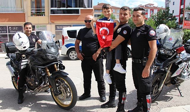 Amasya’da motosikletli yunus timleri, 15 Temmuz şehidi Erdem Diker’in geride bıraktığı 7,5 yaşındaki oğlu Egehan’a sürpriz yaparak birlikte devriye attılar.